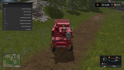 Nachdem ich versucht habe, Menschen zu überfahren – was leider nicht geklappt hat, ich bin durch sie durchgefahren – setze ich das Fahrzeug mangels Fahrkünsten in den Fluss. Schadenssimulation gibt’s leider auch nicht. Erstaunlich für ein Game, das sich Simulation schimpft. Da der «Landwirtschafts-Simulator» leider definitiv kein «GTA» ist, muss ich mir nun eine neue schnittige Kiste kaufen. Landet das Fahrzeug im Fluss ist es futsch. Und klauen geht leider nicht.