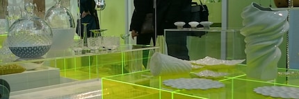 Fast surreal, wie aus einem Salvador-Dalí-Gemälde entsprungen, wirken die Wohnaccessoires. Der Trend spiegelt unsere technisch fortschrittliche Welt wieder, indem es molekulare Muster, synthetische Farbnuancen und hypermoderne Materialien vereint und Unerwartetes entstehen lässt. Das Resultat ist zugegebenermassen nicht jedermanns Sache, aber über Geschmack lässt sich ja bekanntlich streiten. Seitens der ausstellenden Marken war die Stilrichtung auch kaum vorzufinden.