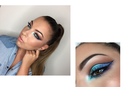 Ich habe mich entschieden, zwei verschiedene Looks zu schminken. Ich wollte zeigen, dass man wirklich die unterschiedlichsten Kreationen mit dieser Palette zaubern kann. Besonders die starken Akzentfarben haben es mir angetan. Mit ihnen kann man auch schlichte Augen-Make-ups mit minimalem Aufwand etwas aufpeppen, indem man sie etwa im inneren Augenwinkel platziert.