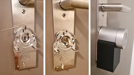 The current Swiss version supports Kaba 8, Kaba 20, Kabastar and Keso cylinders. However, it's important to point out that the best way to use this product is with a lock that you can operate from both sides. In other words, one that lets you unlock from the outside even when there's a key in the lock on the inside. These kinds of cylinders have what's called an «emergency function» or «priority function». If the existing cylinder doesn't have an emergency or priority function, you can ask your landlord as it's easy to have it retrofitted.