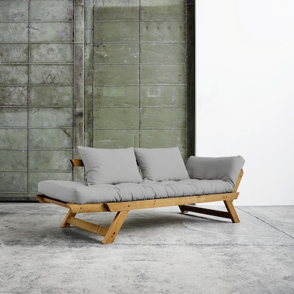 Les canapés-lits de «Karup» sont des partenaires compacts. En mode canapé, les modèles comme le «Bebop» sont équipés d’accoudoirs sur les côtés. Si vous préférez vous allonger, il vous suffit de descendre un des deux côtés et de vous adosser à l’autre. Si c’est pour passer la nuit, vous pouvez descendre les deux côtés.