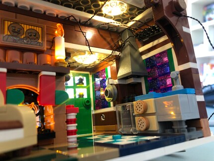 J'ajoute d'autres LED à la lampe de chevet, aux lanternes de la porte d'entrée et aux bougies au-dessus de la cheminée. Entre-temps, je me suis fait au montage. En revanche, l'enchevêtrement croissant des câbles se complique. Les instructions de Light My Bricks montrent bien les espaces dans lesquels ils s'insèrent et se rangent. Mais ils ne se laissent pas facilement apprivoiser.