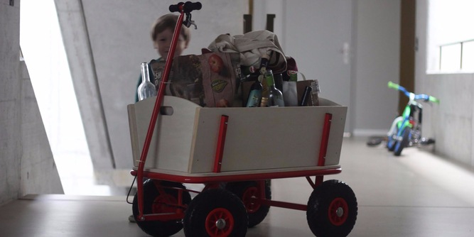 Mit dem Leiterwägeli und Kindern auf Entsorgungstour