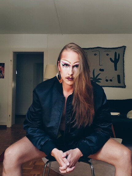 Ich frage mich manchmal, was der wirkliche Drag-Charakter ist. Ich glaube, dass meine längste Drag-Performance eigentlich die des PR-Beraters war. Mit mir persönlich hatte das schon auch zu tun, aber vieles war einfach erlernt. Mensch studiert das Wording, die Konzepte, die sozialen Codes, die es zur Ausübung eines Marketing-Jobs braucht und dann spielt mensch alles einfach ab: Customer Journey, Mehrwert generieren etc. Ich würde jetzt nicht sagen, dass mich all das nie interessiert hat. Ich fand die PR-Werbewelt spannend, aber diese Wichtigkeit, die Lohnarbeit gerade in der Schweiz für die eigene Identität einnimmt, ist ziemlich krass. Es ist ja auch meist die erste Frage beim Small Talk. Mein Drag-Charakter ist davon aber auch inspiriert. Ich spiele oft mit dem Image einer Boss Bitch, die eigentlich den Neoliberalismus kritisch sieht, das Spielchen aber trotzdem perfekt beherrscht und das Beste draus macht. Sich nimmt, was sie will.