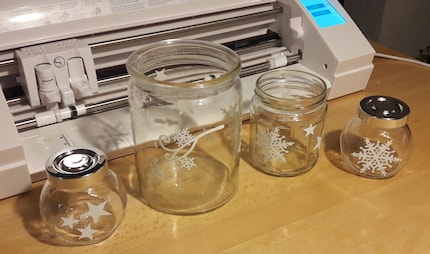 Top motiviert nehmen wir ohne Pause gleich das nächste Projekt in Angriff. Wir haben im Silhouette-Shop gestöbert und eine Vorlage für einen wunderschönen Schneestern sowie eine Vorlage für eine Verzierung mit Schneesternen heruntergeladen. Da wir diverse Einmachgläser so verzieren wollen, drucken wir gleich ein paar aus – also die ganze Folie voll. In der Bildstrecke (Foto 11) oben seht ihr wieder unsere Vorlage.