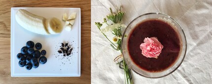 Alle anzeigenMein absoluter Favorit unter den drei Rezepten. Denn wegen seiner Süsse kann die Creme auch glatt als Dessert durchgehen. Gemischt mit ein wenig Joghurt und getoppt mit Granola und Chiasamen verspricht es zudem einen gelungenen und energiegeladenen Start in den Tag. Kalium und Magnesium aus der Banane sind enorm wichtige Mineralstofflieferanten für unsere Muskel- und Nervenfunktionen. Ausserdem enthalten sie viel Phosphor, Eisen, Zink und regulieren die Verdauung auf natürliche Art und Weise. Heidelbeeren enthalten so viel Vitamin E wie sonst fast keine Frucht und unterstützen dadurch die Schutzfunktion unserer Haut.