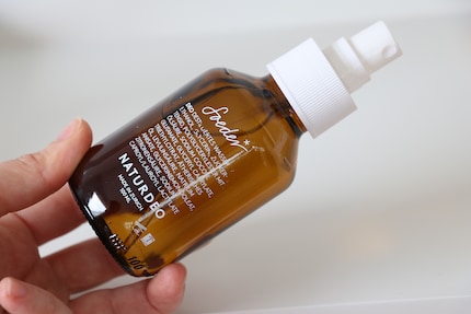 Verpackung: Die Glasflasche und der Sprühkopf aus Kunststoff lassen sich dank Refill-System wiederverwenden.