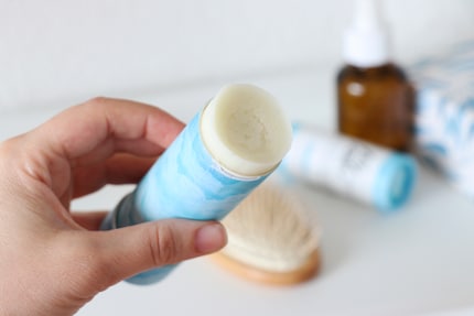 Der Stick lässt sich, anders als erwartet, nicht herausdrehen. Bevor ich damit über meine Achseln streichen kann, stosse ich ihn vorsichtig von unten nach oben. Nach dem Auftragen bleiben auf meiner Haut nebst der «Deospur» kleine Krümel haften, die ich mit meinen warmen Fingern einarbeite, wodurch sie schmelzen. Die Textur ist leicht mehlig. Um den Deostick wieder zu verschliessen, drücke ich den Zipfel, der oben rausschaut, mit meinem Finger zurück in den Kartonzylinder. Dabei bleibt bei jeder Anwendung ein wenig vom Deo an der runden Öffnung hängen, sodass ich diesen Überschuss erst wegwischen muss, bevor ich die Kappe aufsetze. Ausserdem sitzt die Kappe nicht fest auf dem Deo, sondern rutscht ganz leicht ab. Dadurch wäre mir das Teil bereits ein paar Mal fast auf den Boden gefallen.