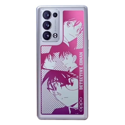 Conans Wahl der aktuellen Smartphone-Generation ist das Oppo Reno 6 Pro+ im exklusiven Conan Design. Auf der Rückseite des silbrig-roten (oder ist es rosa?) oder weissgrauen Smartphones sind Illustrationen der Charaktere des «Meitantei Conan»-Franchises abgebildet. Das Phone läuft auf einem Qualcomm Snapdragon 870, hat 12 GB RAM und 256 GB interner Speicher. Dazu eine 50 Megapixel starke Hauptkamera.