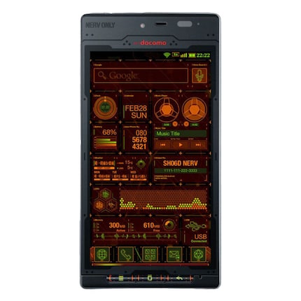 Zum 20. Geburtstag des Animes, der zum Franchise wurde, hat Studio Gainax mit dem Elektronikhersteller Sharp einen Deal geschlagen. Das Sharp SH-06 D Aquos hat einen Anstrich erhalten, das vom Design der Geofront in der Serie inspiriert ist. Die Geofront ist eine gigantische Höhle unter Neo-Tokyo 3, in die Gebäude der Stadt versenkt werden, wenn die öffentlich weit bekannte Geheimorganisation NERV die EVA-Mecha mobilisiert, um die Engel zu bekämpfen.