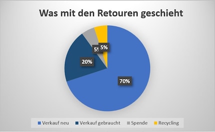 Übrig bleiben Retouren, deren Aufbereitung sich wirtschaftlich nicht lohnt sowie Hygiene und Sicherheitsprodukte. Diese machen rund ein Drittel der nicht mehr originalverpackten Retouren-Kategorie aus (10 Prozent der gesamten Retouren). «intakte Produkte, selbst wenn sie keinen Beautycontest mehr gewinnen, spenden wir nach Möglichkeit an unsere Partnerorganisationen», erklärt Lauritz weiter. «Im Durchschnitt ist dies etwa die Hälfte dieser Restgruppe, also 5 Prozent aller Retouren.» Die restlichen fünf Prozent der Retouren bleiben liegen. Auch Hygieneartikel und Sicherheitsprodukte gehören in diese Gruppe. Denn gebrauchte Zahnbürsten, beschädigte Motorradhelme oder Handyhüllen antiker Geräte, die längst nicht mehr verkauft werden, finden aus nachvollziehbaren Gründen keine Interessenten. Bei günstigen USB-Sticks z.B. steht hingegen die sichere Datenlöschung in keinem Verhältnis zum Aufwand. Diese Artikel rezyklieren wir sicher & fachgerecht. Sie kommen als Rohstoffe zurück in den Produktekreislauf.