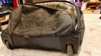 Bei meiner Tasche machen mir Claudia und Lukas zunächst auch wenig Hoffnung. Da die meisten Gepäckstücke, die bei ihnen landen, Hartschalenkoffer aus Kunststoff oder Aluminium sind, ist die Klinik nicht auf Stoff-Näharbeiten spezialisiert. Ich bin schon fast soweit, mich von meiner heissgeliebten Reisetasche zu verabschieden. Dann hat Claudia eine Idee: Sie nimmt ein gebogenes Stück Plastik aus einer Ersatzteilkiste. «Das könnte klappen», sagt sie vielversprechend.