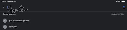 Scribble ist tief im System integriert. Jedes Textfeld kannst du mit dem Apple Pencil bearbeiten und einfach reinschreiben. Damit sind auch Textfelder in den Apps anderer Developer gemeint. Du kannst also mit deiner Handschrift googeln. Ich kann in Snowhaze Browser eine Adresse eingeben. Oder auf digitec.ch nach iPads suchen, was komplett sinnlos ist, denn ich hab ja schon eins. Wenn du leicht über die Ränder des Textfeld schreibst, dann spielt das auch keine Rolle. Das iPad versteht, welches Textfeld du gerade benutzen willst und wo du schreibst.