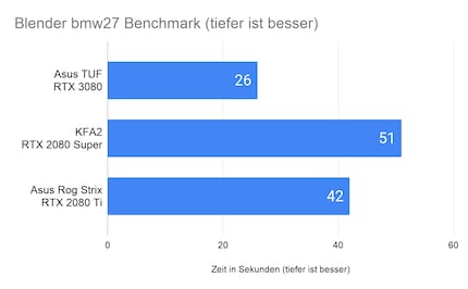 An den Resultaten der Referenz-Workstation lässt sich abschätzen, wie gut andere Systeme abschneiden. Meine Testbench mit der GeForce RTX 3080 erreicht folgende Resultate: