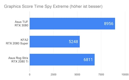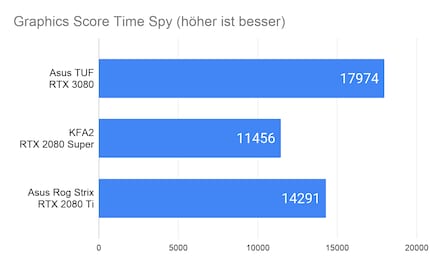 Bei den synthetischen Benchmarks von 3D Mark gebe ich nur den Graphics Score an. Der Benchmark ist sehr inkonsistent beim Overall Score, weshalb das Ergebnis verfälscht wird. Ich führe die Benchmarks jeweils drei Mal durch und wähle das beste Ergebnis. Hier die Resultate der Time Spy und Fire Strike Benchmarks: