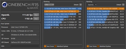 Der OpenGL-Test erreicht gute 111.62 fps. Beinahe das selbe Resultat, wie beim Asus ROG Zephyrus mit der GTX 1080 (110.31 fps). Das lässt etwas aufhorchen, da hier ja nur eine GTX 1050 verbaut ist.