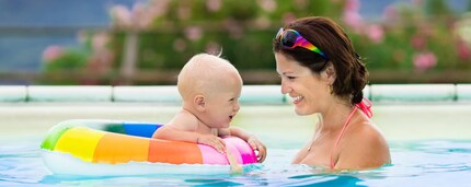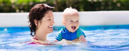Schwimmreifen, Schwimmflügel oder sogenannte Poolnudeln bieten im Gegensatz zu den Spassprodukten nicht nur Abwechslung, sondern helfen auch für eine ideale Schwimmlage im Wasser. Für einen Bootsausflug oder ängstliche Eltern sind Rettungswesten erhältlich. So oder so darf sich dein Baby nie unbeaufsichtigt im Wasser befinden. Denn auch nur wenig Wasser in einem Pool kann genug Wasser sein, um zu ertrinken.