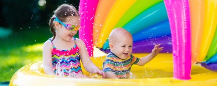 Für den ordentlichen Spassfaktor sorgen kleine, lustige Planschbecken sowie tierische Schwimmringe und Luftmatratzen. Aber auch Bannewannenspielzeug oder Sandkasten Zubehör können für den Wasserspass umfunktioniert werden. Klassiker sind farbige Bälle, die wieder hochspringen, wenn man sie ins Wasser drückt.
