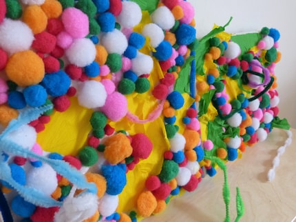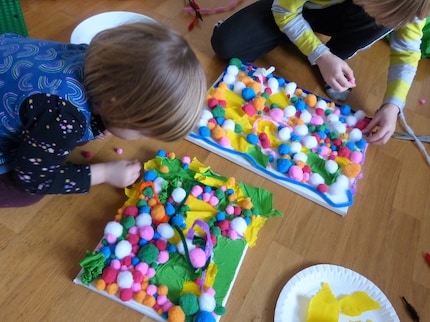 Alle anzeigenIch finde es toll, dass die Kinder bei dieser Bastelarbeit herunterfahren und entspannen können. Bis auf den Teil mit dem Klebeband können sie alles komplett alleine machen. Ein weiterer Vorteil dieser Bastelei ist, dass die Pompons und der Chenilledraht wieder abgenommen werden können. Sollte es nicht gefallen, können die Kinder das Bild immer wieder neu gestalten. Klar, irgendwann hat sich das Band «ausgeklebt». Dann können die Bastelmaterialien jedoch für andere Sachen verwendet werden.