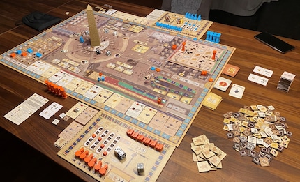 Du magst komplexe Spiele? Du magst es, dich vor dem Spiel in der 32-seitigen Anleitung durchzuschlagen und die Spielmechanik dann jedem Spieler geduldig zu erklären? Dann ist Tekhenu genau das richtige Spiel für dich. Es basiert zwar auf dem Ressourcenmanagement, spielt sich aber ganz anders als «Anno 1800». Dank dem Obelisken kommt eine erfrischende Spielmechanik ins Spiel, wie ich sie bis jetzt so noch nie in einem anderen Spiel gesehen habe.