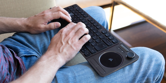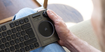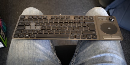Corsair will mit der K83-Tastatur das Wohnzimmer erobern. Die Tastatur mit Multimedia-Hotkeys, Trackpad und Joystick vermag aber nicht zu überzeugen.