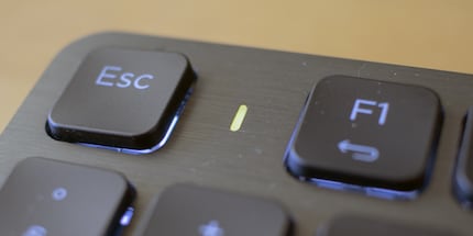 Durch Druck auf Fn + Enter gibt dir ein LED zwischen Esc- und F1-Taste Infos über den Ladezustand des Keyboards. Noch ein Wort zum Lautstärkeregler: Das Verstellen der Lautstärke funktioniert sehr gut. Vom Stummschalten lässt sich aber nicht dasselbe behaupten: Jedes Mal, wenn ich stummschalten möchte, verstelle ich gleichzeitig die Lautstärke, da ich den Regler nach oben bewege.