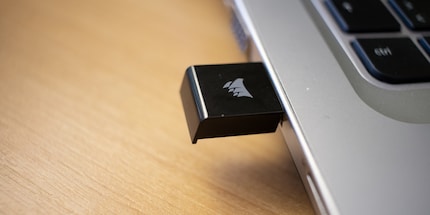 Der Eingang für das Ladekabel befindet sich am oberen Gehäuserahmen auf Höhe der F12-Taste. Rechts neben dem Port liegt der Ein- und Ausschalter. Mit voller Ladung gibt Corsair übrigens 1.67 Tage Akkuleistung an. In meinem fünftägigen Test habe ich die Tastatur regelmässig gebraucht und habe immer noch um die 50 Prozent Akku.