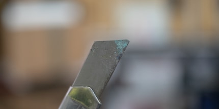 Zwischen den Lamellen reinige ich mit einem Japanmesser. So sieht es nach nur ein mal durch den Spalt fahren aus: