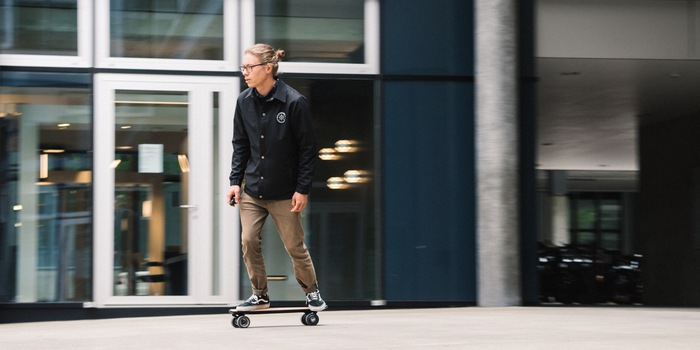 Das Lou Board gibt es in drei verschiedenen Varianten. Ich habe mir die teuerste genauer angesehen. Diese ist mit einem Dual-Hub-Motor und einem leichten Karbon-Deck ausgestattet. Die beiden Motoren verstecken sich in den Vorderrädern und bringen ganz schön viel Leistung auf die Strasse. Trotzdem ist auf den ersten Blick nicht erkennbar, dass es sich um ein E-Skateboard handelt.