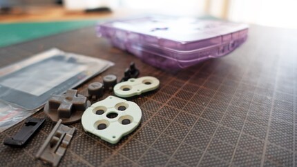 Abgesehen vom Board verzichte ich nach dem Anblick der Schmutzkrusten im Inneren darauf, noch irgendwas des alten Game Boy weiter zu verwenden. Ersatzmaterial muss her. Ein neues Gehäuse, Tasten und leitfähige Silikonpads.