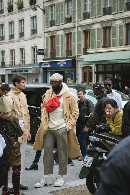 Von schrillen Farben war in Paris weit und breit nichts zu sehen. Im Gegenteil: Stattdessen dominierten gedeckte und leise Töne wie Erdfarben, Schwarz, Grau und Pastellfarben. Tonangebend war die Farbe Beige, die selbst bei Männern gut ankommt. Wenn du dich für den monochromen Look entscheidest, empfehle ich dir zum Outfit ein Accessoire, das heraussticht. Etwa eine rote Tasche oder eine edgy Sonnenbrille.