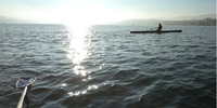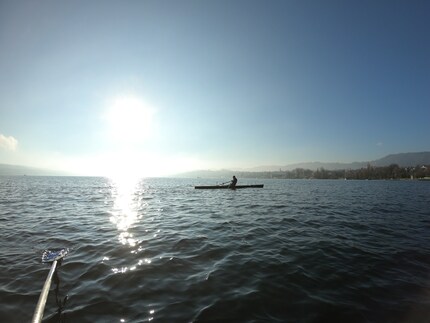 Alle anzeigenSchon das Einsteigen in ein sogenanntes Gigruderbooot vom Typ C fällt mir nicht ganz leicht. Dieser Bootstyp hat eine wesentlich stabilere Wasserlage als ein reines Rennboot. Trotzdem bin ich auf dem See hauptsächlich damit beschäftigt, nicht ins Wasser zu fallen. Jonathan ermahnt mich deshalb auch immer wieder, ich solle die Rudergriffe mit den Daumen nach aussen drücken, um das Boot zu stabilisieren. Ausserdem muss ich darauf achten, beide Ruder gleich tief ins Wasser einzutauchen. Es ist auch sehr wichtig, links wie rechts mit demselben Kraftaufwand zu rudern, da du sonst im Kreis fährst. Die linke Hand immer über die rechte Hand ziehen – alte Seemannsregel. Und das Abdrehen der Ruderblätter nicht vergessen. Und entspannen. So einfach ist das.
