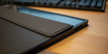 Asus liefert den ZenScreen mit einem faltbaren Cover. Damit stellst du den Monitor entweder auf oder schützt ihn beim Verstauen sowie Transport. Einen Standfuss benötigst du nicht. Magnete sorgen dafür, dass der Screen nicht verrutscht und umfällt. Selbst hochkant lässt sich das Teil hinstellen.