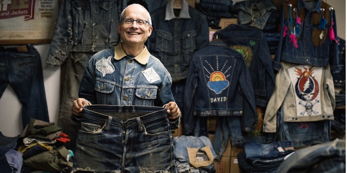 Ruedi Karrer, Jeans-Sammler: Das ist gar nicht so einfach. Die ersten 2 000 Stück sind sortiert – hauptsächlich Hosen und Jacken. Die restlichen 12 000 sind noch in Arbeit. Ich ordne meine Ware nach Marken, Alter und ob eine Jacke (un-)gefüttert ist. Mittlerweile habe ich eine Datenbank erstellt. Das hilft, wenn ich Museen, Messen oder Ausstellungen einzelne Stücke ausleihe.