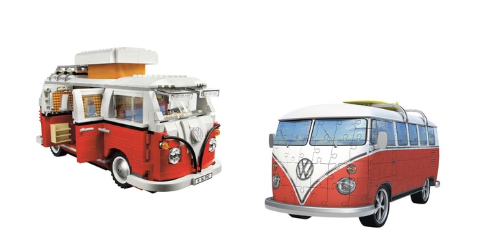 Bau dir deinen Bulli – aus 3D-Puzzleteilen, LEGO-Steinen oder Kunststoff-Teilchen. Wer den VW-Bus nicht zusammensetzen möchte, findet auch bereits fertiggebaute Modelle im entsprechenden Look. Und sogar Produkte wie ein Kühlschrank oder Ordnungshelfer gibt es im Design des Kultautos.