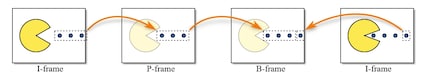 Beim P-Frame wird die Differenz aus dem vorherigen Bild berechnet, beim B-Frame aus dem vorherigen und dem nächsten Bild.