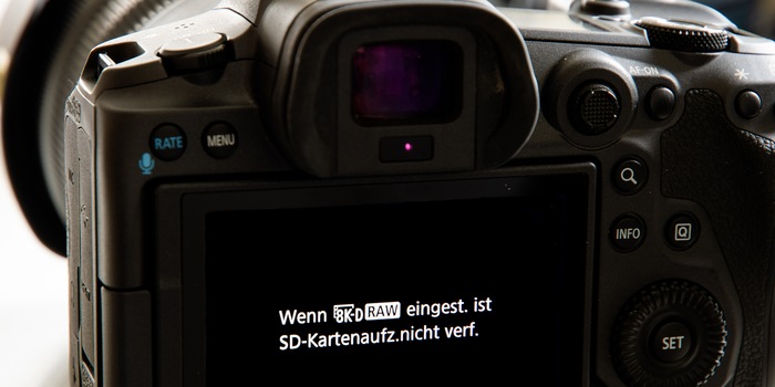 Es fängt schon beim Drücken des Record-Buttons an. Auch die schnellste SD-Karte ist nicht schnell genug, um die gigantischen Datenmengen laufend aufzuzeichnen. Genauer gesagt: Sie kann es nur in der schlechtesten Aufnahmequalität. Diese nennt sich IPB. Die Qualitätsstufen All-I und RAW sind mit SD nicht möglich. Das geht nur mit einer Speicherkarte vom Typ CFexpress.