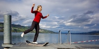Der Gedanke «doppelt hält besser» trifft dann allerdings nicht zu, im Gegenteil: Die Belastungsgrenze für Doppellines beträgt 60 Kilogramm, da diese natürlich nicht mittig im Board befestigt sind und die Holzkonstruktion entsprechend mehr aushalten muss. Kinder und leichtere Erwachsene können darauf ein paar Zentimeter über dem Boden erste Schritte machen und diese Niederschwelligkeit ist es, die Spass bringt. Alle können spontan irgendwas darauf machen. Wer das Stehen, Drehen und Balancieren beherrscht, beginnt das Board zu kippen und seine Skills zu verfeinern. Ausserdem eignet sich der Balanceakt auf der kurzen Line auch für Kräftigungs- und Stabilisationsübungen aller Art.