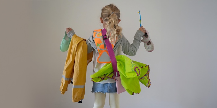 Um zu verhindern, dass die Utensilien, Kleider und Accessoires deines Kindes verloren gehen – ja, das gehen sie wirklich –, solltest du alle Dinge konsequent beschriften. Das kannst du mit einem Textilienmarker oder Stempel. Falls du die Sachen dereinst weitergeben möchtest: besser mit wieder entfernbaren Etiketten.