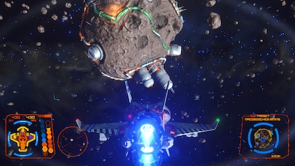 Es kracht und rummst an jeder Ecke. Anfangs braucht es etwas Geduld bis man mit der Steuerung vertraut ist. Ich hab Maus und Tastatur, Joystick und Gamepad getestet und bin schliesslich bei letzterem geblieben. Da die Tasten mehrfach belegt sind, gibt es einiges zu lernen. Ein richtiges Tutorial fehlt. Nach der kurzen Eingewöhnung macht es aber extrem viel Spass, eine Gruppe vorlauter Piraten aufzumischen und ihre Raumschiffe spektakulär in die Luft zu jagen.