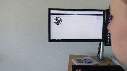 Vor dem eigentlichen Drucken hältst du nach einem passenden Motiv Ausschau. Jeder Schneideplotter-Hersteller bietet auf seiner Homepage Sujets an, die du (teils gratis) herunterladen kannst. Oder du entwirfst wie Anne ein eigenes Logo. Wir entscheiden uns nach langem Hin und Her für ihr Markenlogo als Test-Print. Achtung: Du musst dein Motiv immer spiegelverkehrt zeichnen und plotten.