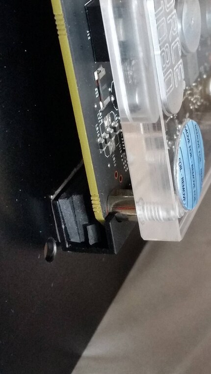 Philipp stellt ebenfalls die Einlage mit den drei Teilen zusammen und verbaut die Komponenten darauf. Trotz aller Planung muss hier und da etwas gebastelt werden. Bei der Grafikkarte kann er nur eine Schraube zur Befestigung verwenden. Er funktioniert kurzerhand die Kühlblock-Abstandshalter um: Die Grafikkarte liegt auf diesen auf und wird von oben durch die einen Schraube an Ort und Stelle gehalten.