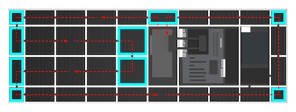 Auf den Bildern der Wärmebildkamera ist gut zu erkennen, dass gewisse Kühlkörper nicht heisser werden als die Umgebungstemperatur. Das liegt daran, dass er an diesen die Bodenheizplatten nicht befestigen konnte. Diese Kühlkörper sind daher nur fürs Optische, sie leiten keine Wärme ab. Rund ein Viertel der Kühlfläche wird nicht gebraucht. Umso erstaunlicher sind die guten Werte, die der Wand-PC erreicht.
