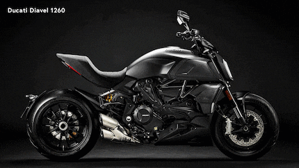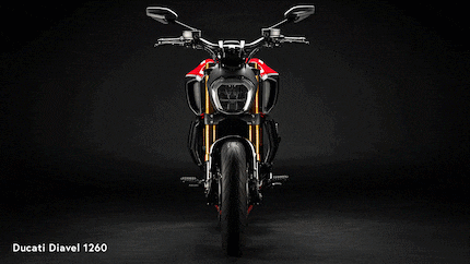 Zugegeben, das GIF ist nicht ganz perfekt. Denn obwohl die Bilder auf der offiziellen Seite Ducatis sich stark ähneln, ändern sich Licht und die Grösse leicht. Genauso wie der Winkel in der Seitenansicht. Das Lamborghini-Bike steht ganz leicht weiter zur Kamera geneigt. Also ja nicht als Grössenvergleich nehmen, sondern nur als Formvergleich.