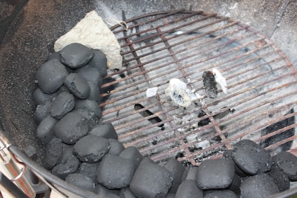 Wie eben erwähnt, benötigst du ein paar Briketts deines Vertrauens. Diese Briketts werden nun in Reihe an der Aussenseite deines Kugelgrills aufgeschichtet.