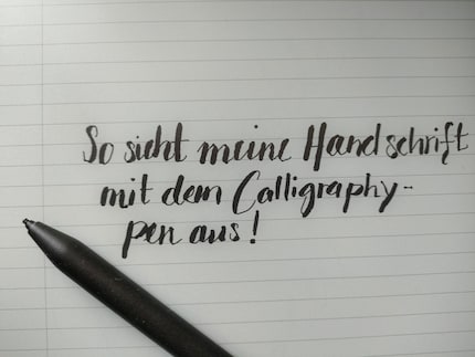Denn mit dieser Einstellung haben deine Pinselstriche die grösstmögliche Variation: Halte ich den Stift etwas schiefer und gebe etwas mehr Druck, wird der Pinselstrich breiter und dunkler. Halte ich den Stift hingegen gerade und gebe nur leichten Druck, wird der Pinselstrich merklich filigraner. So auch mit dem «Calligraphy»-Pen, der meine Handschrift in ästhetische Höhen katapultiert: