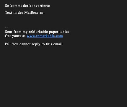 Die Texterkennung funktioniert genügend gut – aber ich muss zugeben, dass ich sie nicht gross genutzt habe. Für meinen Gebrauch des Geräts finde ich es sinnvoller, mir das Originaldokument als PDF zuzumailen. Das sieht dann etwa so aus – im Vergleich zur Convert-to-Text-Funktion, die den Text dann als Zeilen im E-Mail ausspuckt: