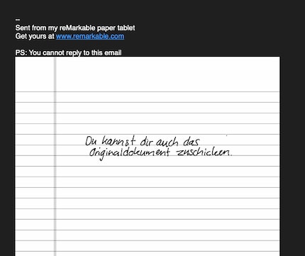 Schön und gut – Schreiben und Zeichnen kann ich also, mit diesem ReMarkable. Doch wie sieht es aus, wenn ich meine Notizen in getippter Form mit meinen Arbeitskollegen teilen will oder den Entwurf meinem Chef mailen soll?