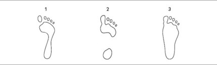 Man unterscheidet zwischen einer normalen Fussform 1 (neutral), einem Hohlfuss 2 (Supination), sowie einem Senk- oder Plattfuss 3 (Pronation). Deine Fussform kannst du anhand eines kleinen Tests bestimmen: Wenn du mit nassen Füssen über den Boden läufst, geben dir deine Fussabdrücke einen guten Anhaltspunkt für deine Fussform. Weitere Informationen zu diesem Thema findest du auch im folgenden Ratgeber:
