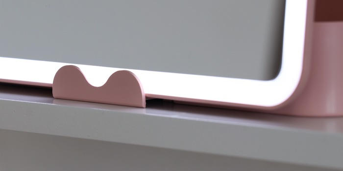 Viel nützlicher als das Licht finde ich hingegen die dazugehörige Aufbewahrungsbox mit ausziehbarer Halterung. Während ich in der Box Krimskrams oder Beauty-Zeugs aufbewahren kann, dient diese dazu, den Spiegel oder mein Smartphone aufzustellen. Das ist praktisch, wenn ich einem Beauty-Tutorial folgen möchte.
